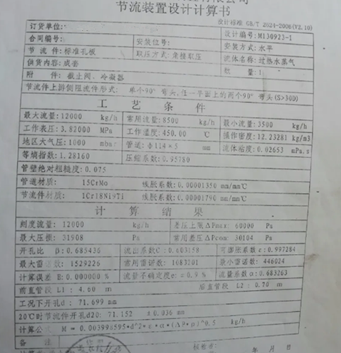 4、根據(jù)孔板計算書中數(shù)據(jù),流量采用的是減壓前的中壓蒸汽的溫度、壓力及相關(guān)參數(shù)進(jìn)行的計算,最大差壓60kpa,最大流量12000m3/h。