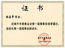 公司董事長(zhǎng)當(dāng)選為南平市慈善總會(huì)副會(huì)長(zhǎng) 公司向南平市慈善總會(huì)捐資三十萬元