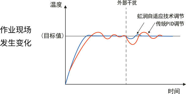 虹潤(rùn)自適應(yīng)技術(shù)自動(dòng)抑制常規(guī)干擾引起的溫度波動(dòng),針對(duì)開關(guān)艙室門時(shí)外部空氣的流入等可預(yù)測(cè)的溫度波動(dòng),穩(wěn)定地進(jìn)行自動(dòng)控制。提高品質(zhì),縮短溫度變化穩(wěn)定所需的時(shí)間,且將溫度波動(dòng)控制在較小限度,為提高生產(chǎn)能力做出貢獻(xiàn)。