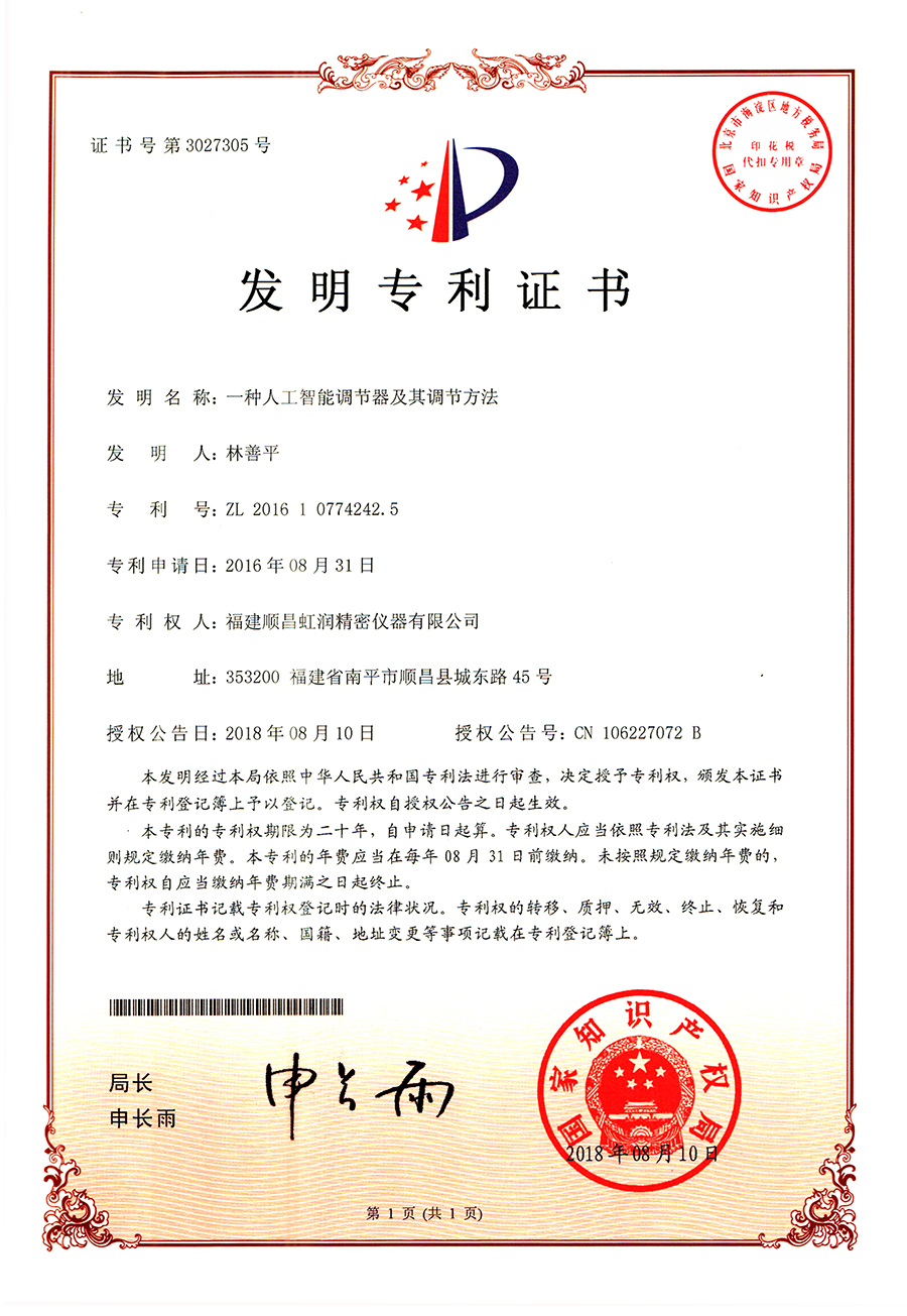 虹潤(rùn)于2015年推出人工智能算法的溫控器。經(jīng)過長(zhǎng)時(shí)間現(xiàn)場(chǎng)使用,溫控器無需人工整定參數(shù),無超調(diào)、欠調(diào),控溫精度高,基本達(dá)±0.1℃,得到用戶一致好評(píng)??刂扑惴ǐ@4項(xiàng)發(fā)明專利,主持起草2項(xiàng)國(guó)家標(biāo)準(zhǔn),獲得6項(xiàng)軟件著作權(quán)。